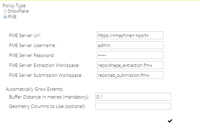 If using FME Server to convert data from the Oracle Database into any format and back again, each Exchange Policy will need to specify the FME Server instance and workspaces.