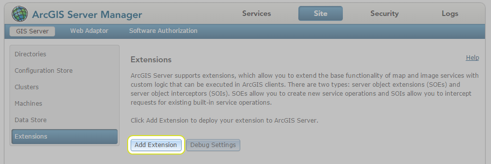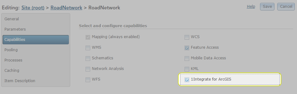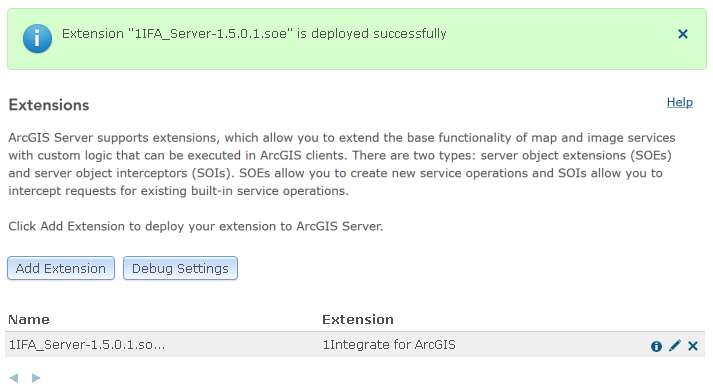In order to enable 1Integrate for ArcGIS to be used for your data services, it must first be configured through the ArcGIS Server Manager.