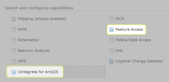 1Integrate for ArcGIS and Feature Access capabilities enabled