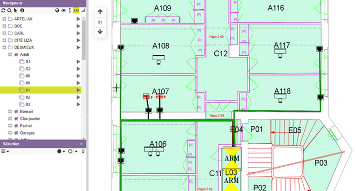 1Telecomms fournit une vue unifiée des équipements actifs, des interconnexions réseau et de leur localisation. La solution modélise les relations physiques, logiques et verticales pour assurer une gestion bout-en-bout, en utilisant les plans d’étages pour suivre les tracés de la fibre sur plusieurs niveaux, en intégrer les parcours verticaux (colonnes montantes).