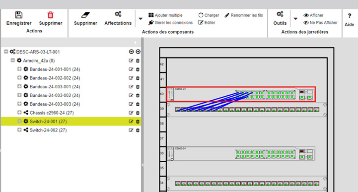 | Chaque élément du réseau est positionné en fonction du site, du bâtiment, de l’étage et du local dans lequel il se trouve. | Les écrans hyperréalistes améliorent la connaissance et facilite la gestion des actifs même en cas d’évolutions fréquentes | Accès rapide au brassage des armoires et aux taux d’occupation des équipements |