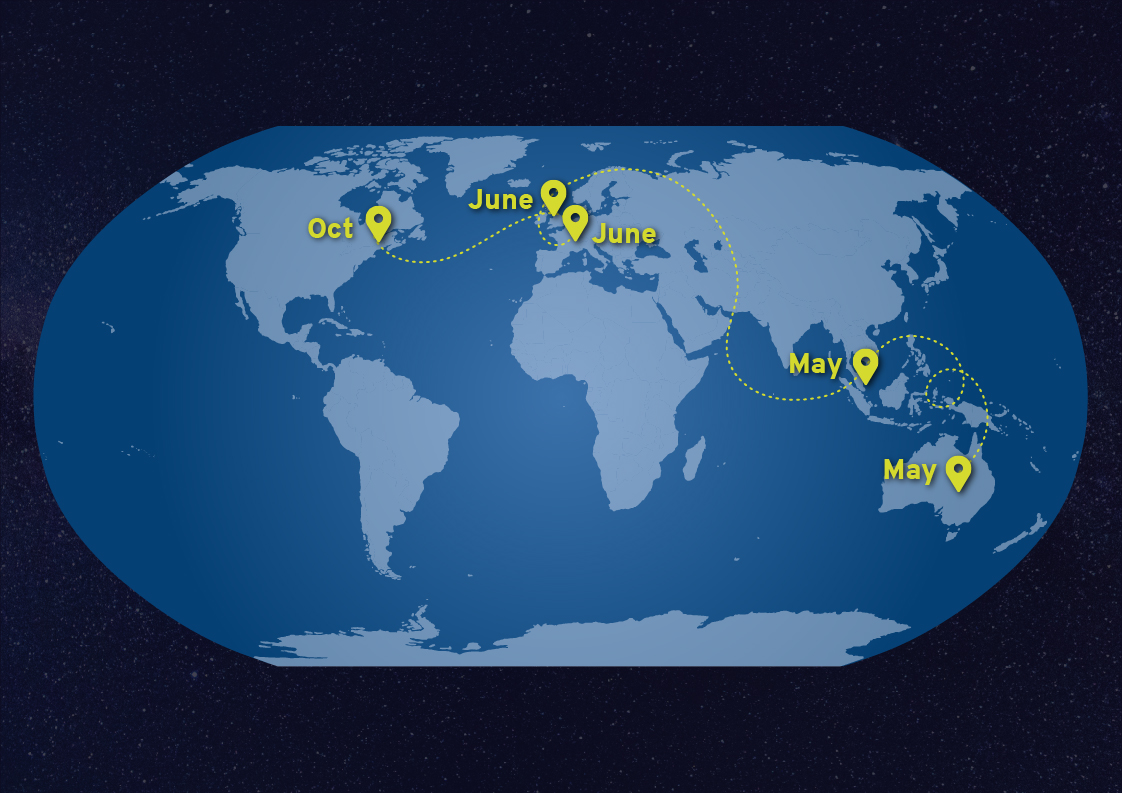 Nos collègues australiens ont donné le coup d'envoi de cet événement inédit, avant de se rendre à Singapour. Ont suivi les équipes du Royaume-Uni, qui font étape dans trois villes (Leeds, Londres, Cardiff). Le tour 1Spatial a continué aux États-Unis pour se terminer en France.