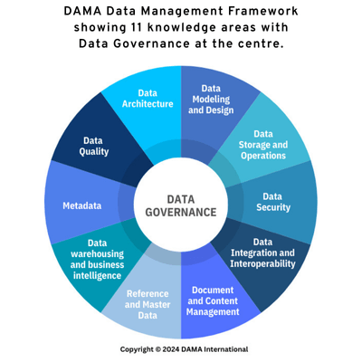 The solution isn’t quick fixes; it is a structured, repeatable approach to data management. One proven framework is the DAMA Data Management Body of Knowledge (DMBOK), which covers 11 key areas, including: