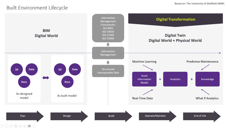 Contractors exchange unstructured information with asset owners for project “handover”. Asset owners need to harness unstructured information, as part of their “Asset Information Models” to operate and maintain diverse types of built environment assets - such as buildings, road networks, railway lines, airports, flood defences or power stations. Asset owners need structured information to measure, model, monitor and manage assets.