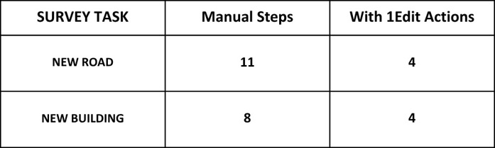 For creating a new building, 1Edit’s actions reduce the editing time from 10 minutes to 2 minutes.