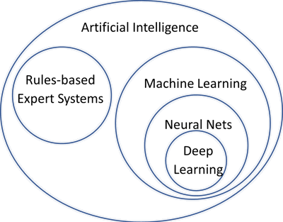 Traditionally, rule-based or expert systems have always been considered a part of AI although these days when people think of AI they are more likely referring to Machine Learning (ML). The difference between them is that in a rules-based system the rules are explicitly defined by experts, but in ML the rules are inferred automatically from possibly subtle patterns in data using approaches such as neural networks or deep learning.